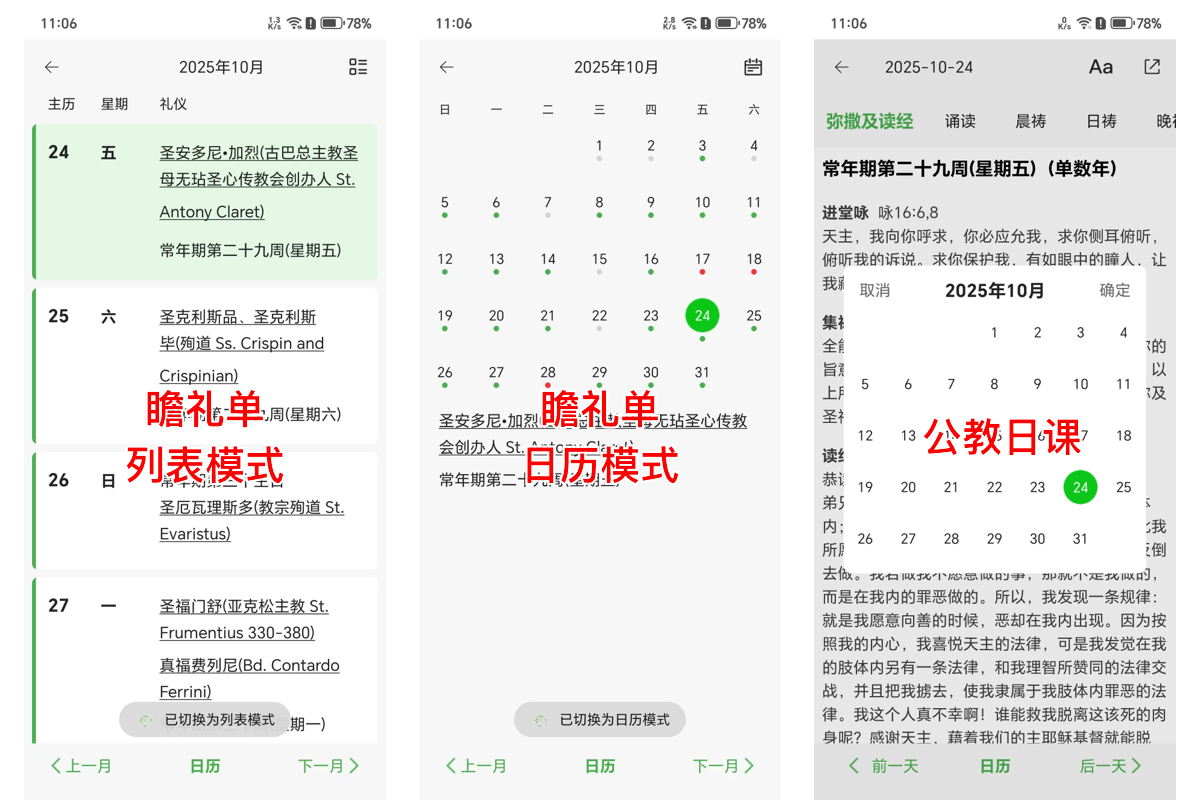 1. 应大家呼吁,瞻礼单支持日历、列表模式切换,查看节日更便捷