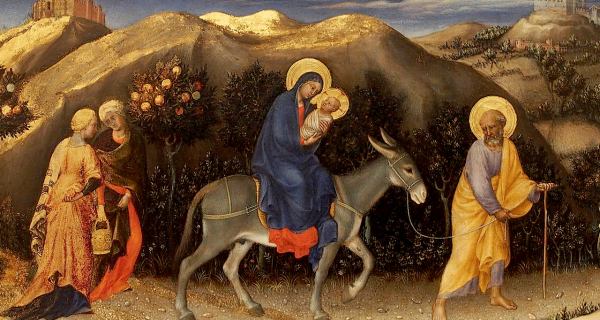 若瑟便起来,星夜带了婴孩和他的母亲,退避到埃及去了。