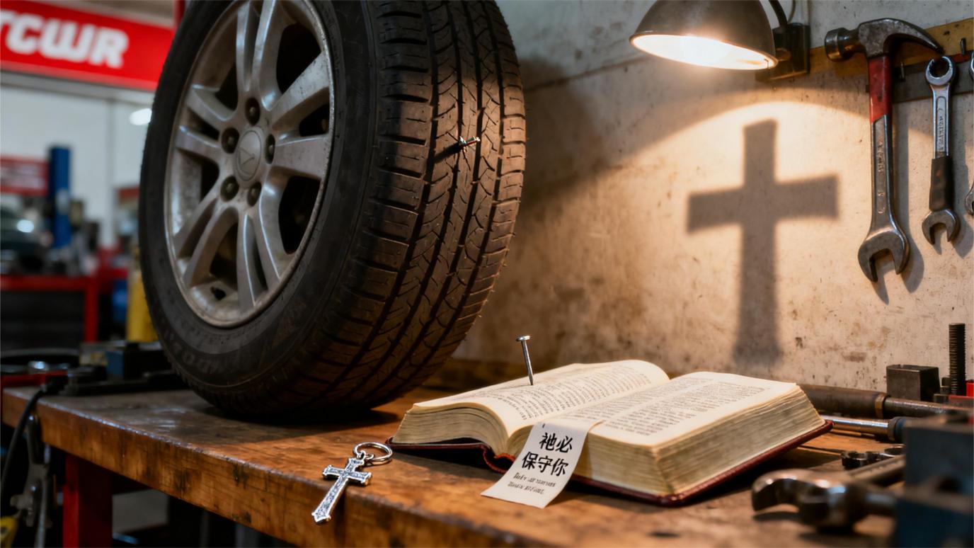 我站在一旁,看着师傅补胎的动作,突然想起出发前一晚的反复提醒、方向盘的轻微跑偏,还有一路莫名的安稳——原来天主早就知道这隐藏的危险,却用祂的方式“放缓”了危机,让我们带着最牵挂的人,平平安安地到了目的地。那一刻,《斐理伯书》里的经文不再是纸上的文字,而是实实在在落在我生命里的恩典,让我真切感受到:天主的守护,从来都藏在我们看不见的地方,却比我们自己更在意我们的安危。