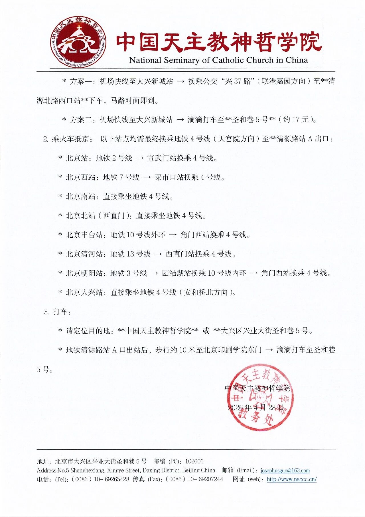 2. 报名材料:请携带本堂神父或修会会长的推荐信、学员信息表及承诺书。