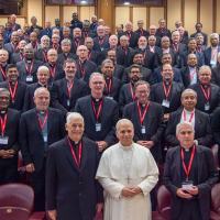 教宗向耶稣会主要长上会议成员致词,勉励耶稣会「在今日的世界中,分辨出以新方式实践你们使命的途径」。