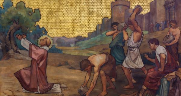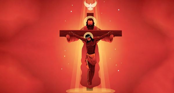 那沉重的十字架下,耶稣背负着世人的罪罚。荆棘冠冕刺痛祂的额头,鲜血把大地染红了。祂默默地承受着苦难,眼中闪烁着痛苦的泪花 。为救罪人祂甘心钉十字架,圣心被长枪刺开了!